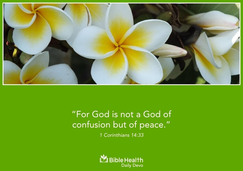 Ask yourself today: Is there any area of my life ruled by confusion or disorder? Am I giving space for the God of peace to speak and settle my heart?