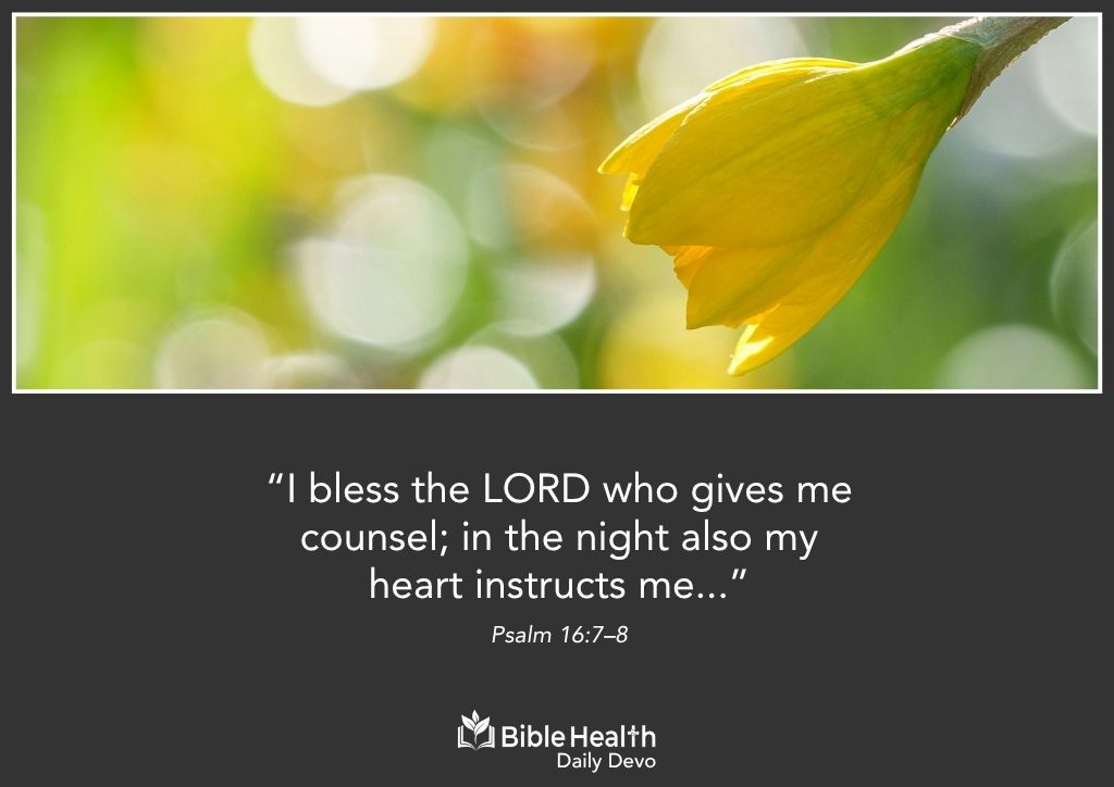 Biblical health grows when we invite God’s counsel into both day and night. His wisdom helps us process emotions, release worry, and trust His leadership. It shapes how we rest, how we respond to pressure, and how we carry the events of the day. God’s counsel is like a gentle hand on the shoulder, steadying us when life feels uncertain.