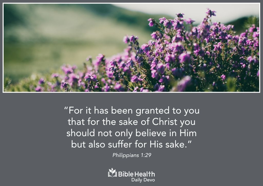 Prayer: Lord, thank You for the grace of believing in Christ, and thank You for the grace of sharing in His sufferings. Help me to endure sickness and trial with faith, so that my life points others to Your strength. Let my weakness become a testimony of Your power and glory. Amen.