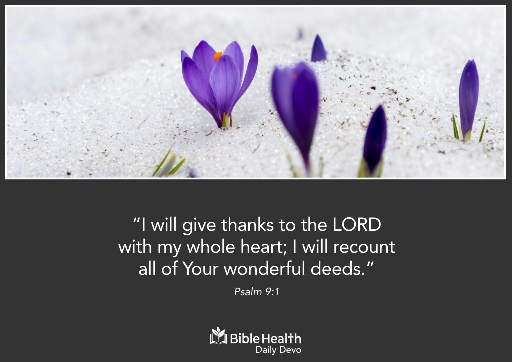 This verse also speaks to the relational side of Biblical Health. Recounting the works of God builds community. Testimony stirs hope in others. Your story about how God lifted you from despair, provided when you had nothing, or restored what was broken may be the spark that helps someone else trust Him again. Gratitude becomes a ministry when it is shared.