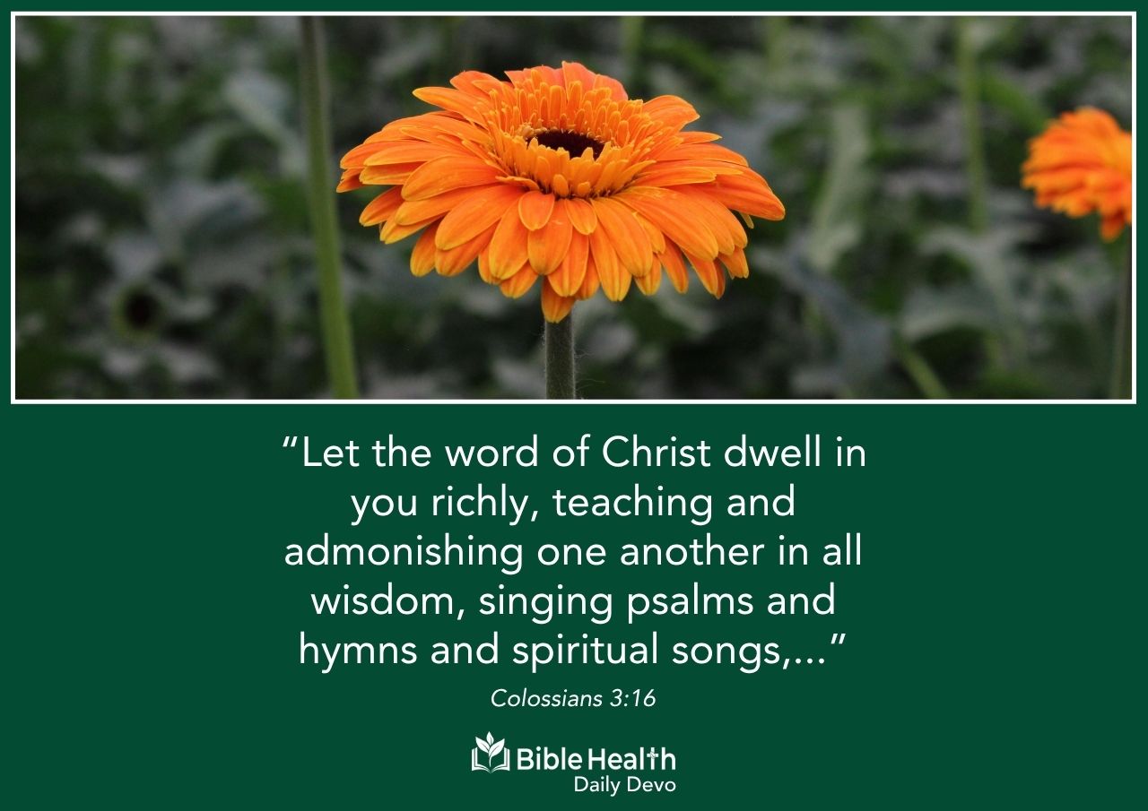 “Let the word of Christ dwell in you richly, teaching and admonishing one another in all wisdom, singing psalms and hymns and spiritual songs, with thankfulness in your hearts to God.”
