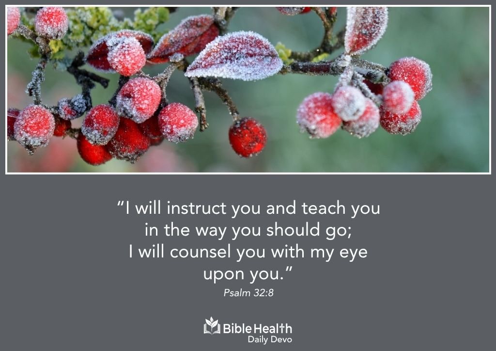 To “instruct” and “teach” reveals God’s desire to shape our understanding so we can walk in paths that lead to life and wholeness. His counsel is not generalized. It is specific, timely, and perfectly suited to our unique needs. The Hebrew sense behind these verbs implies steady guidance, like a loving father showing a child how to walk step by step.
