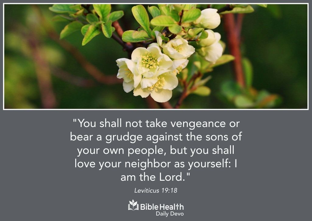 Prayer: Father, help me release every grudge and let go of every hurt. Teach me to love my neighbor with sincerity and grace. Protect my heart from bitterness and fill me with compassion that brings peace to my mind, strength to my body, and fullness to my life. Amen.