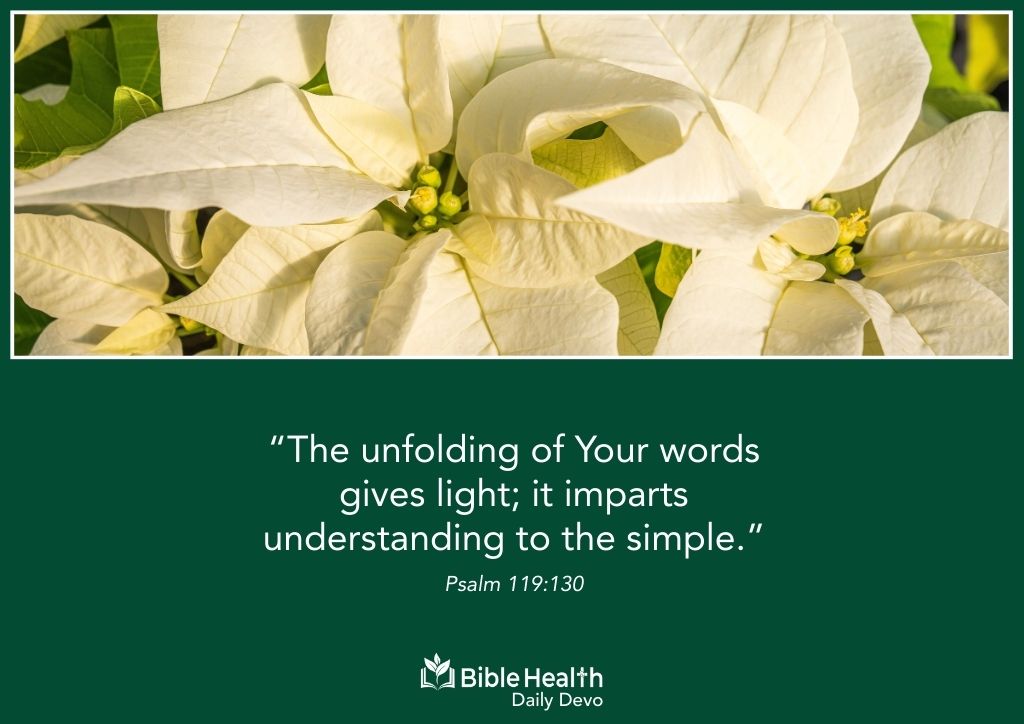 Psalm 119 is a long, heartfelt celebration of God’s Word, and this verse captures one of its central themes. The unfolding of Your words paints the image of Scripture being opened layer by layer, much like opening a door to let sunlight into a dark room.