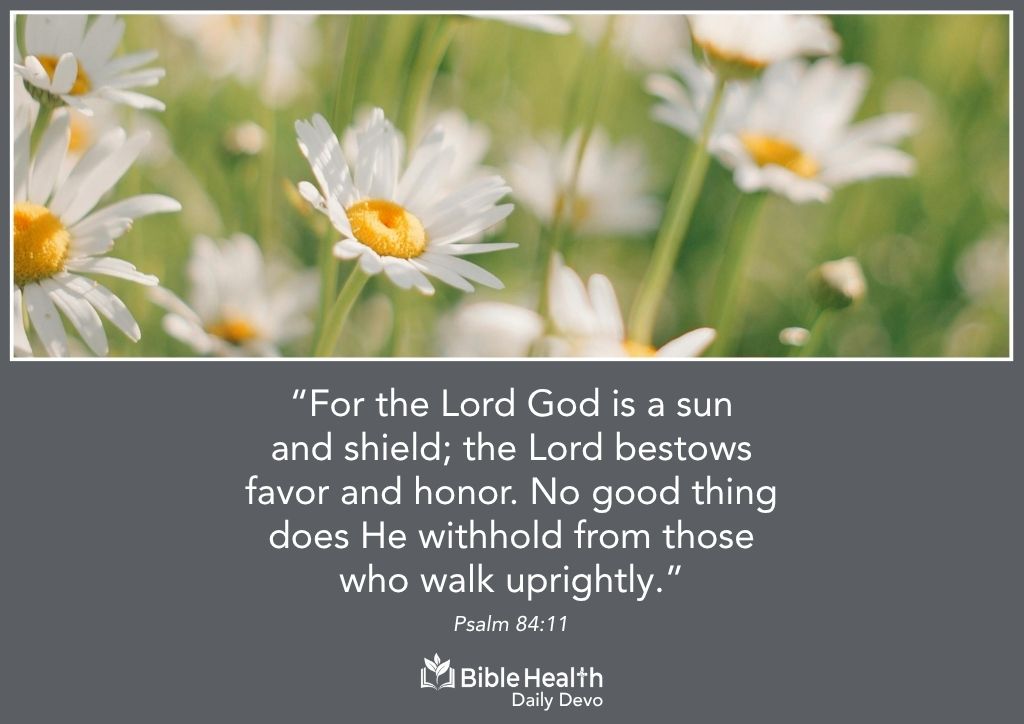 “For the Lord God is a sun and shield; the Lord bestows favor and honor. No good thing does He withhold from those who walk uprightly.”