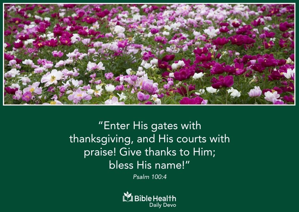 “Enter His gates with thanksgiving, and His courts with praise! Give thanks to Him; bless His name!”