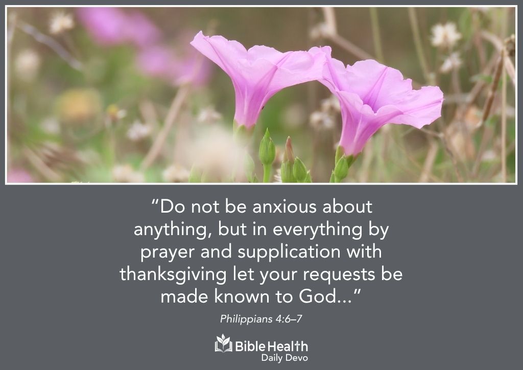 Prayer: Lord, I bring You every worry and concern weighing on me today. Thank You that You hear my prayers and that Your peace guards my heart and mind. Teach me to live free from anxiety and full of trust, so I may thrive in Your presence. Amen.