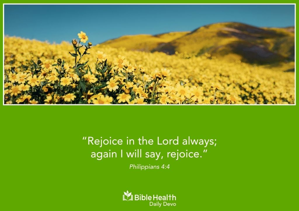 How does this connect to biblical health? Joy is more than a spiritual virtue, it is life-giving to the whole person. Research affirms that consistent joy boosts immunity, lowers blood pressure, and improves resilience under stress. Scripture has been teaching this truth for millennia: joy strengthens body, mind, and soul. When Paul tells us to rejoice always, he is inviting us into a lifestyle that sustains wholeness.