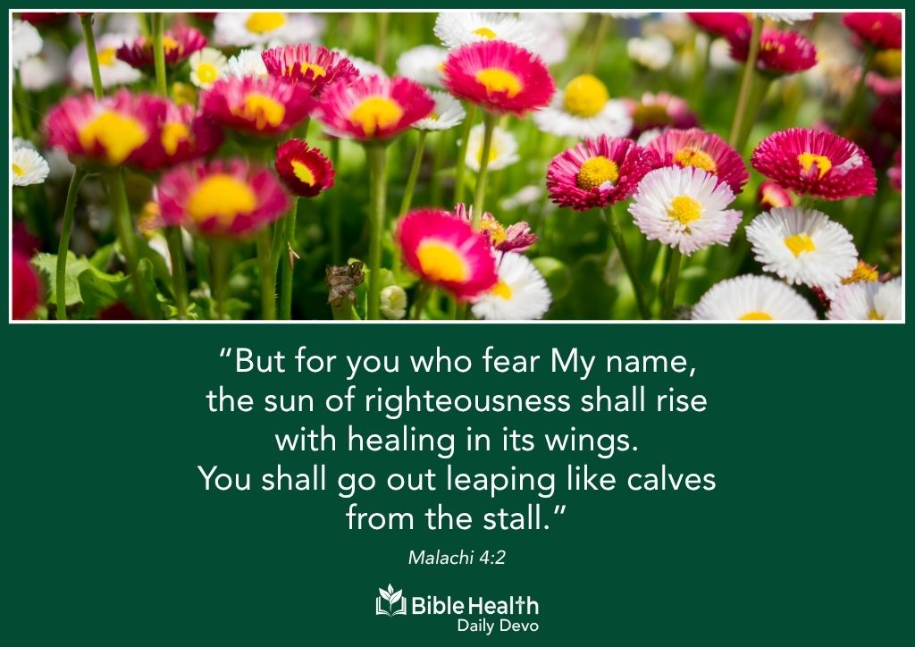 Prayer: Lord, thank You that the Sun of Righteousness has risen with healing in His wings. Shine on every dark place in my life with Your light and restoration. Fill me with joy like a calf leaping in freedom, that I may thrive in Your presence and reflect Your healing to others. Amen.