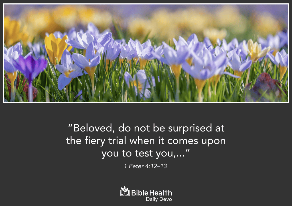 “Beloved, do not be surprised at the fiery trial when it comes upon you to test you, as though something strange were happening to you. But rejoice insofar as you share Christ’s sufferings, that you may also rejoice and be glad when His glory is revealed.”