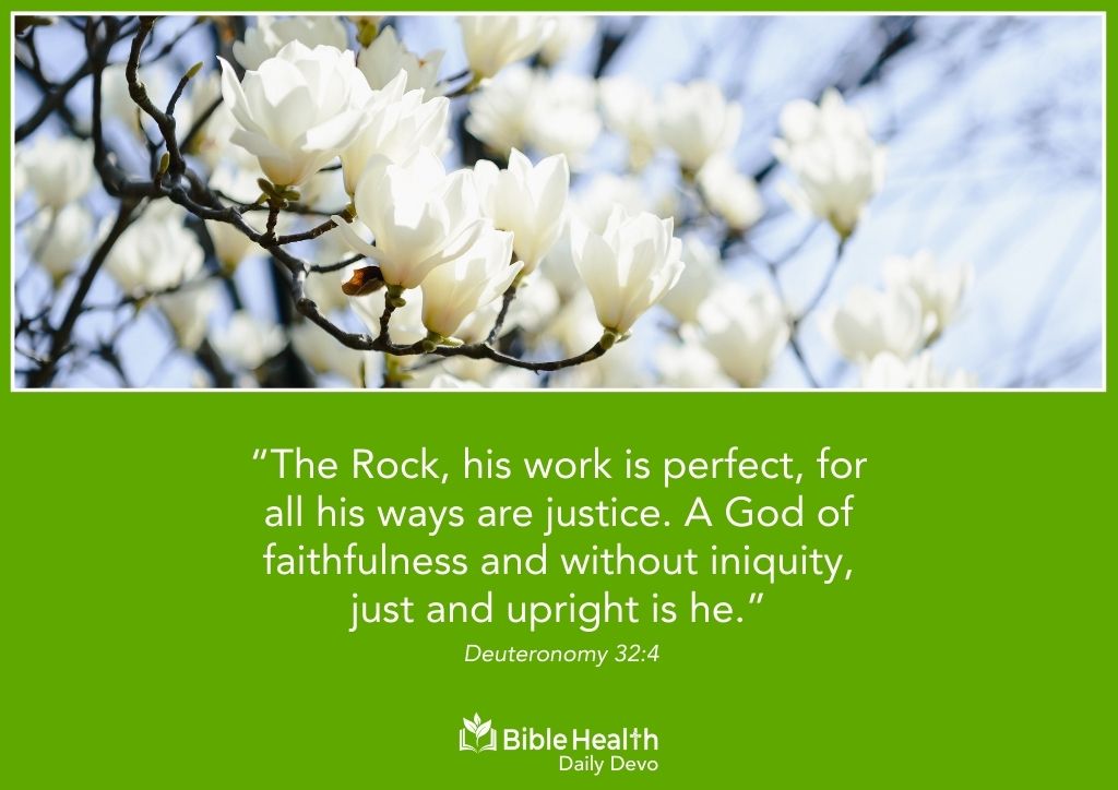 This verse fits naturally with spring and new beginnings. New seasons can feel hopeful and unsettling at the same time. Growth requires movement, but movement feels safer when the foundation is firm. Deuteronomy 32:4 reassures us that renewal does not rest on fragile ground. It rests on God’s unchanging faithfulness.