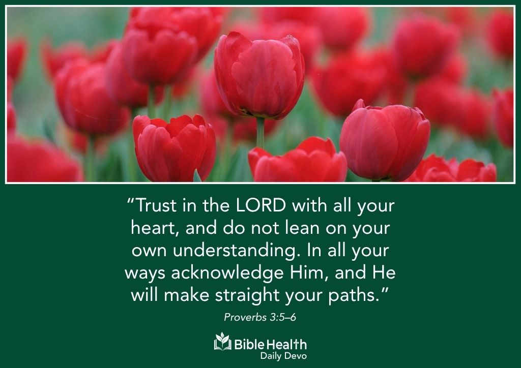This promise speaks directly to biblical health. When we rely on our limited understanding, we often live in stress and imbalance trying to control what was never ours to manage. Trusting God brings internal order. As we release worry, our minds quiet, our bodies relax, and our spirits rest. Proverbs 14:30 echoes this truth: “A tranquil heart gives life to the body.” Trust is not only a spiritual act, it brings physiological peace.