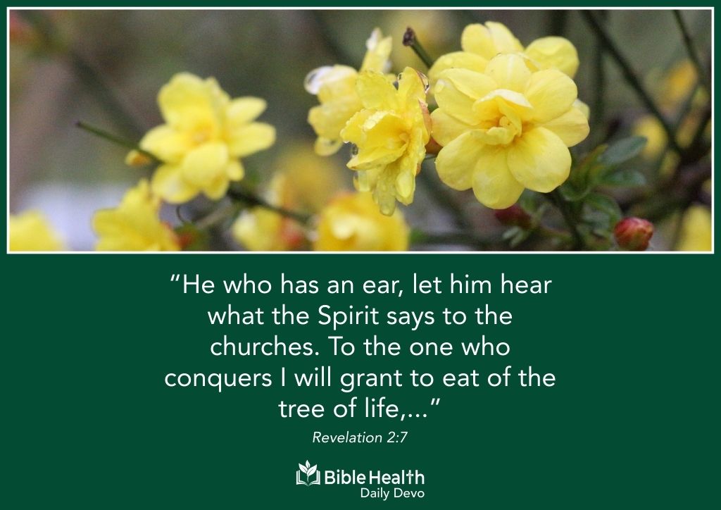 Prayer: Lord Jesus, give me ears to hear what Your Spirit is saying. Draw me back to my first love and strengthen me to overcome the challenges that pull me away from You. Nourish my spirit, steady my mind, and guide my daily choices so that I walk in the life You offer. Thank You for the promise of renewal and fellowship with You. Amen.