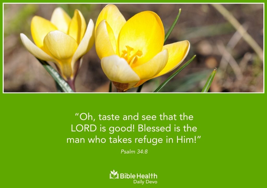 Prayer: Father, teach me to taste and see Your goodness each day. Help me turn from what drains my strength and to receive what truly nourishes my body, mind, and spirit. Let my refuge be in You, and let Your goodness shape my choices and my health. Amen.