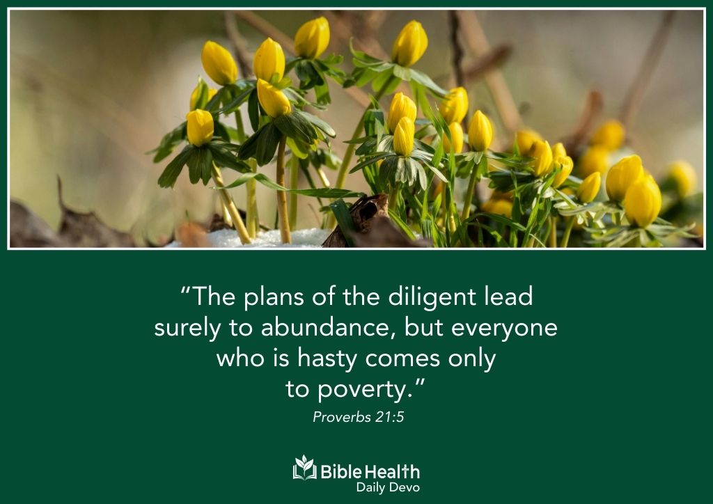 This proverb reveals a timeless truth about how God designed life to flourish. Diligence, steady effort, and thoughtful planning lead to abundance. Hasty, impulsive, or inconsistent habits lead to lack and frustration. Solomon is not simply giving productivity advice. He is describing a spiritual principle that affects every dimension of biblical health.